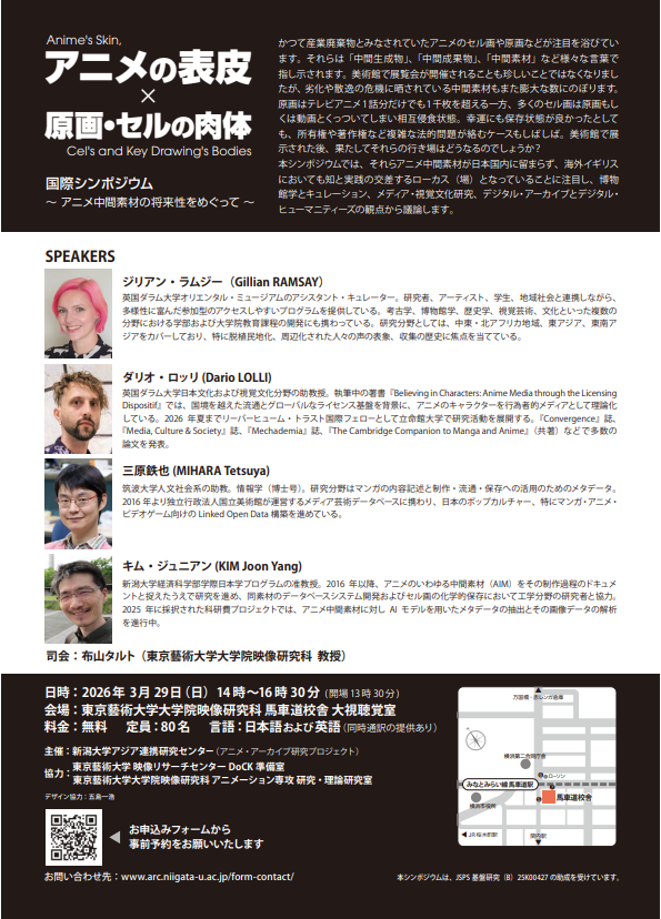 2025年 3月29日(日)国際シンポジウム「アニメの表皮、原画・セルの肉体〜アニメ中間素材の将来性をめぐって」開催のお知らせ